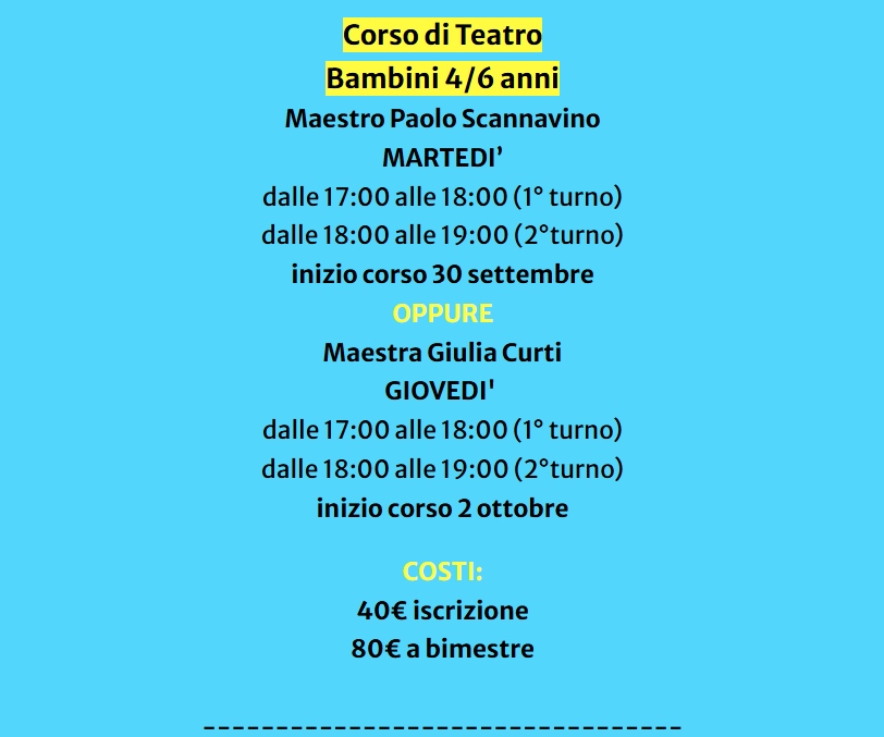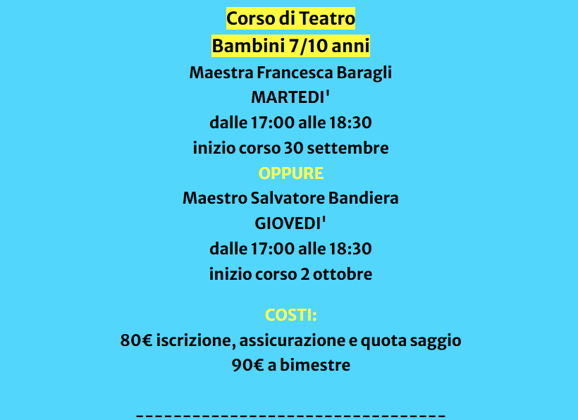 Età: Aperto a bambini e ragazzi dai 4 ai 14 anni.