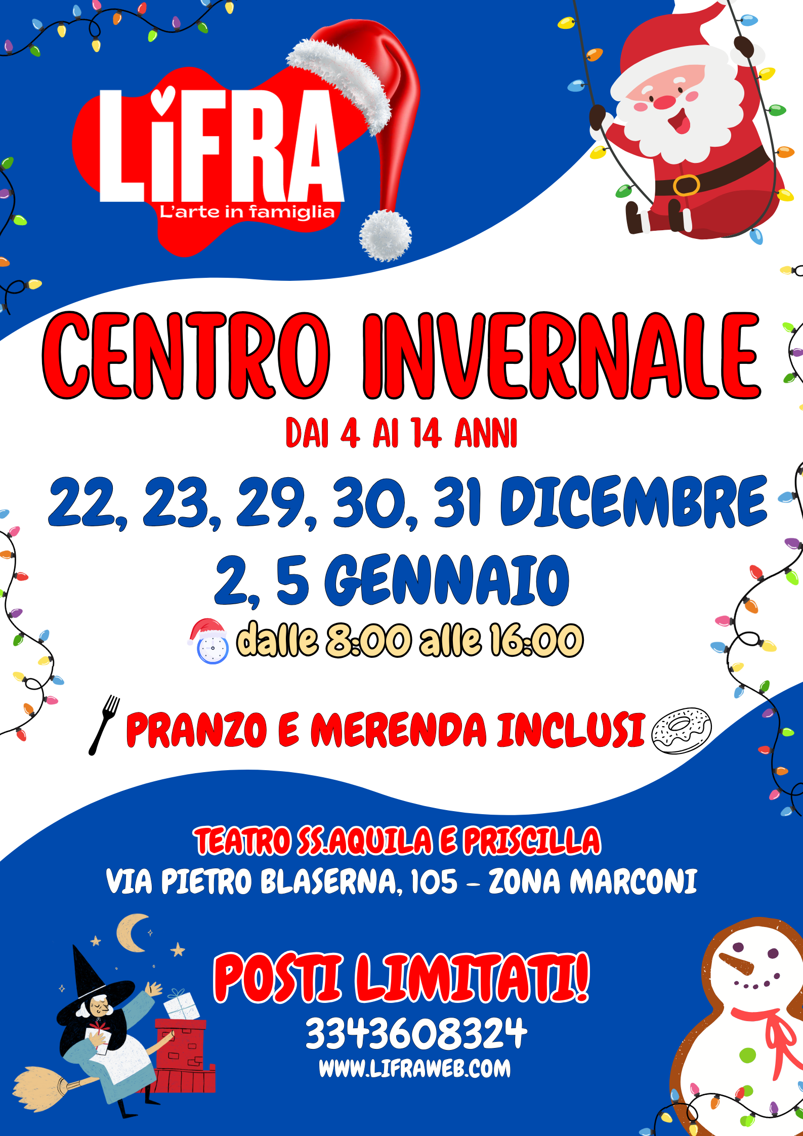 Non lasciare che le vacanze invernali siano noiose! Unisciti a noi al Centro Invernale LiFra per un’esperienza indimenticabile e divertente per i tuoi bambini e ragazzi. Aspettiamo di trascorrere insieme questo periodo festivo!