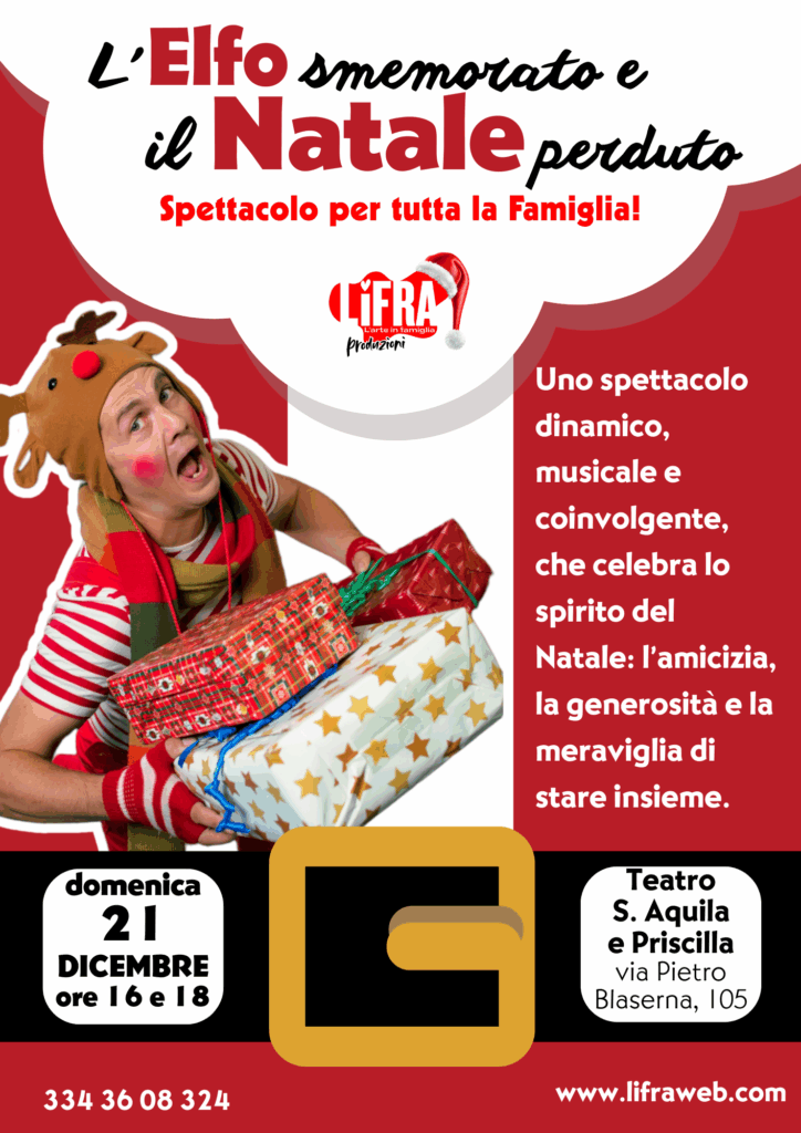 Quest’anno al Polo Nord c’è un grande problema: Babbo Natale è scomparso! Al suo posto compare un buffo elfo smemorato, che non ricorda nulla di sé. Grazie all’aiuto del pubblico e all’incontro con i personaggi divertenti, l’elfo dovrà affrontare prove comiche e tenerissime per ritrovare la sua vera identità. Uno spettacolo dinamico, musicale e coinvolgente, che celebra lo spirito del Natale, l’amicizia, la generosità e la meraviglia di stare insieme.